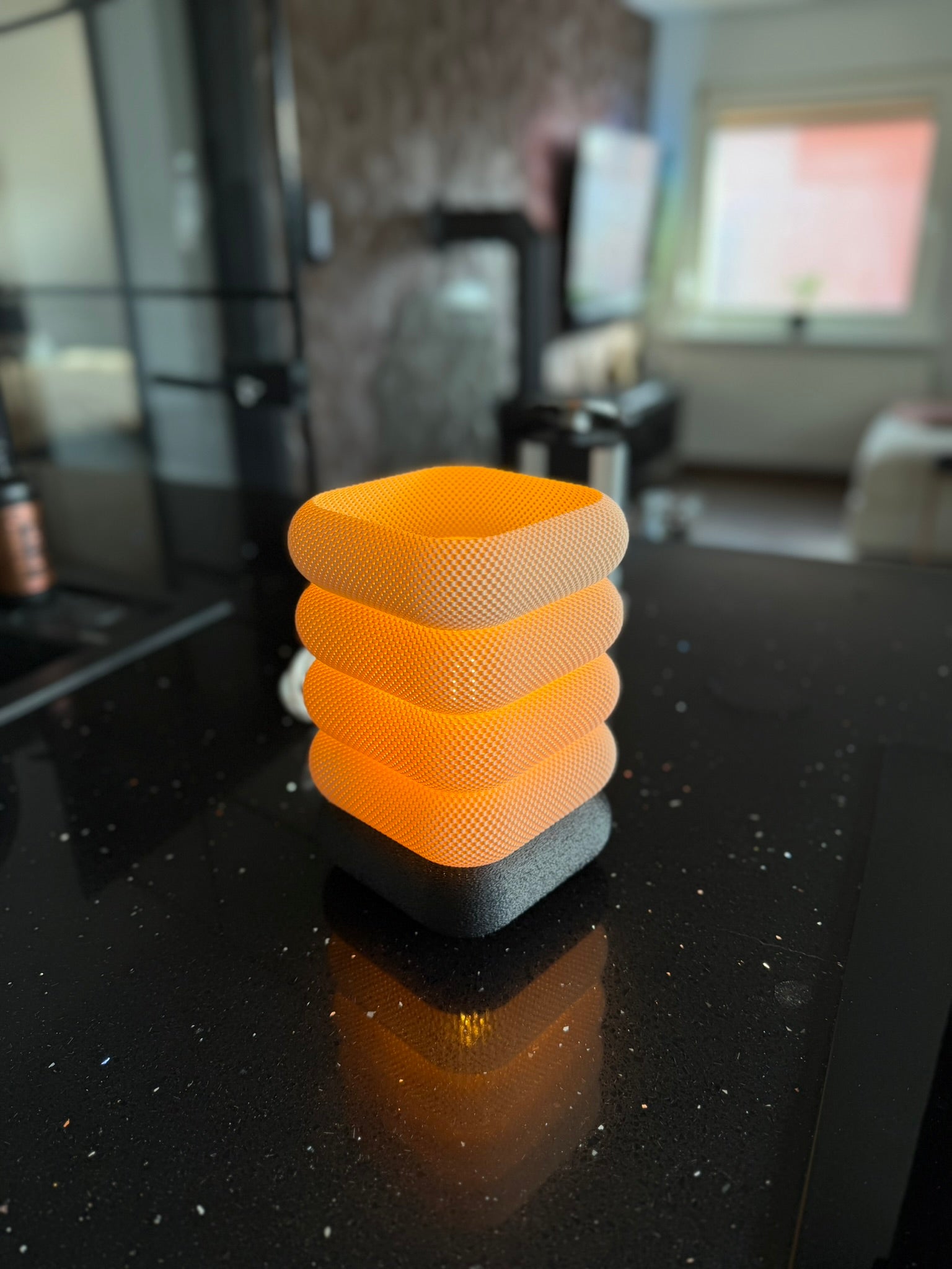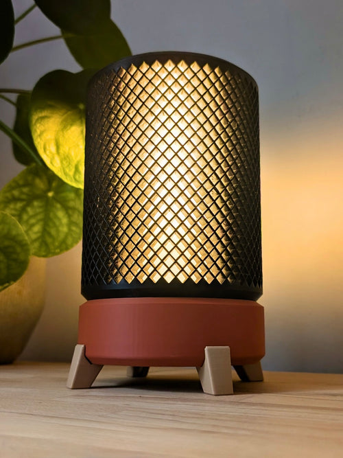 Rauten-Gitter Tischlampe – Nachhaltiges 3D-gedrucktes Diamond Lattice Ambient Light | Warmes Glow-Design in Schwarz & Terracotta